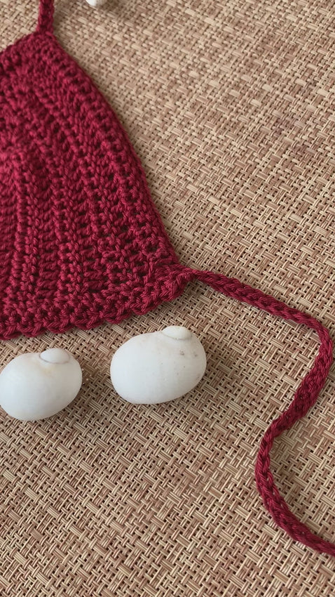 Il triangle in maglia crochet della collezione Greek firmata Over the Blue Maison, lavorato all'uncinetto, disponibile in diverse colorazioni! Ottima vestibilità. Può essere usato come parte superiore di un bikini o come top sopra un capo a vita alta.
